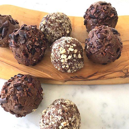 These no-bake "Nutella" Bliss Balls are decadent and oh so satisfying with that wonderful rich hazelnut & chocolate flavour. They are super easy to make in the blender and great for snacks or breakfast on-the-go. Fortunately, they also happen to be low-carb and free of refined sugar, grain and dairy, but packed with fibre, protein, healthy fats, and adaptogens, too! The "adaptogenic" boost in this recipe comes from maca. Natural adaptogens are believed to help the body regulate cortisol levels and deal with stress. Touted as an "Incan superfood", maca has been used for millennia to increase stamina and endurance. Consumption may help relieve anxiety while simultaneously boosting mood, energy, concentration, and even libido and sexual function. Maca has a slightly earthy, butterscotch taste that blends well with chocolate and hazelnut. "Nutella" Bliss Balls EASY | SERVES 10 BALLS Ingredients: 1 cup raw hazelnuts 1/2 cup unsweetened desiccated coconut 2 scoops Organika Enhanced Collagen peptides (omit for vegan) 1/4 cup raw cacao powder 2 Tbsp chia seeds 1 Tbsp Organika Gelatinized Maca powder 1/8 tsp sea salt 2 Tbsp coconut oil, melted pure stevia or raw honey (nonvegan) to taste 2 Tbsp raw cacao nibs optional toppings: additional cacao nibs or finely chopped hazelnuts Directions: Preheat oven to 400F. Spread hazelnuts on a rimmed baking sheet and put in oven. Cook for 10-15 minutes, stirring every 5 minutes so they toast evenly. Allow to cool. Put cooled hazelnuts, coconut, collagen, cacao, chia seeds, maca, and salt into blender container. Blend until well-chopped. Add coconut oil and blend until a uniform paste is created, scraping the sides and bottom with a rubber spatula as needed. Sweeten with stevia or honey as desired. Add cacao nibs and pulse-blend or stir until well-mixed but texture is maintained (so the nibs provide some crunch). Scrape mixture onto a plate or parchment paper. Roll into balls. Once the balls are formed, roll in cacao nibs or finely chopped nuts as desired. Enjoy as-is or store in an air-tight container in the fridge for a week, or the freezer for up to 2 months. By: Dr. Tara Sunshine (@drtarasunshine) Tara is an avid traveller, fitness enthusiast, and aspiring chef who endeavours to inspire others to experience the joy & richness of life.