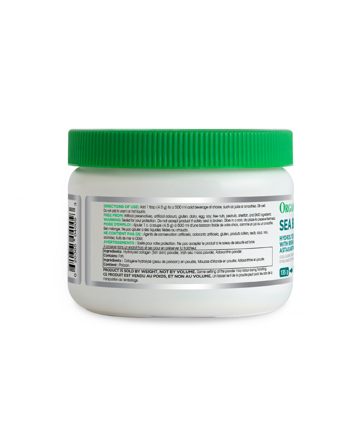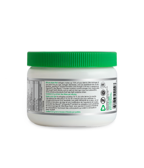 La poudre Sea Beauty™ d'Organika® contient du collagène marin ainsi que de la mousse de mer et de l'astaxanthine, le tout pour maximiser vos objectifs de beauté, l'élasticité de votre peau et sa résistance. En plus de l'amélioration de la santé de la peau et des avantages anti-âge, vous obtenez une source d'antioxydants puissants pour aider à combattre le stress oxydatif.
