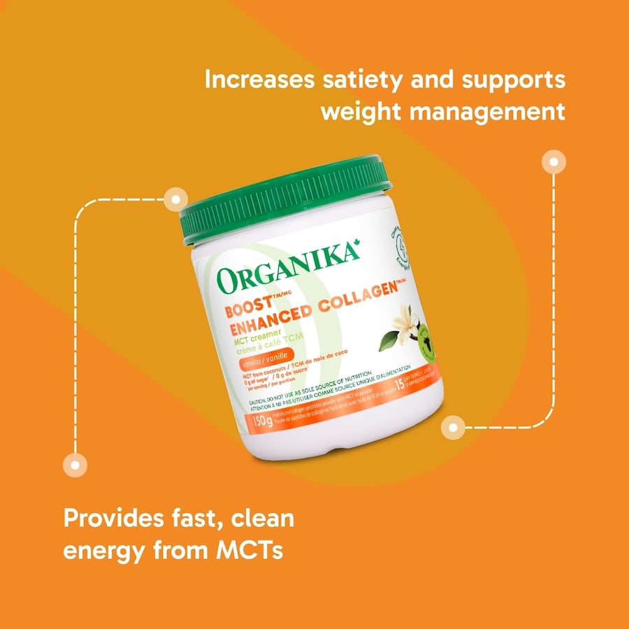 To support digestion and energy, Enhanced Collagen Boost is blended with MCT oil powder made with sustainably sourced coconuts from Indonesia. In fact, 100% of the fat content within the creamer comes from MCTs, which are quickly converted by the liver and easy to digest. MCTs help to keep you satiated, support healthy weight management and contribute to microbiota balance in your gut.
