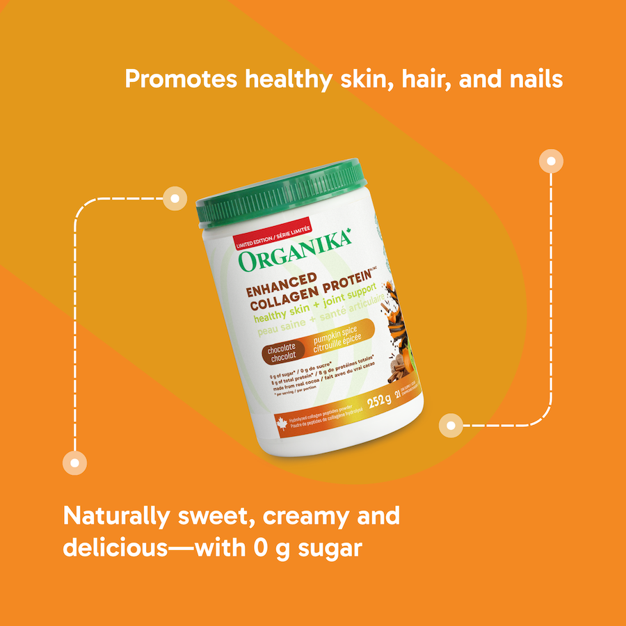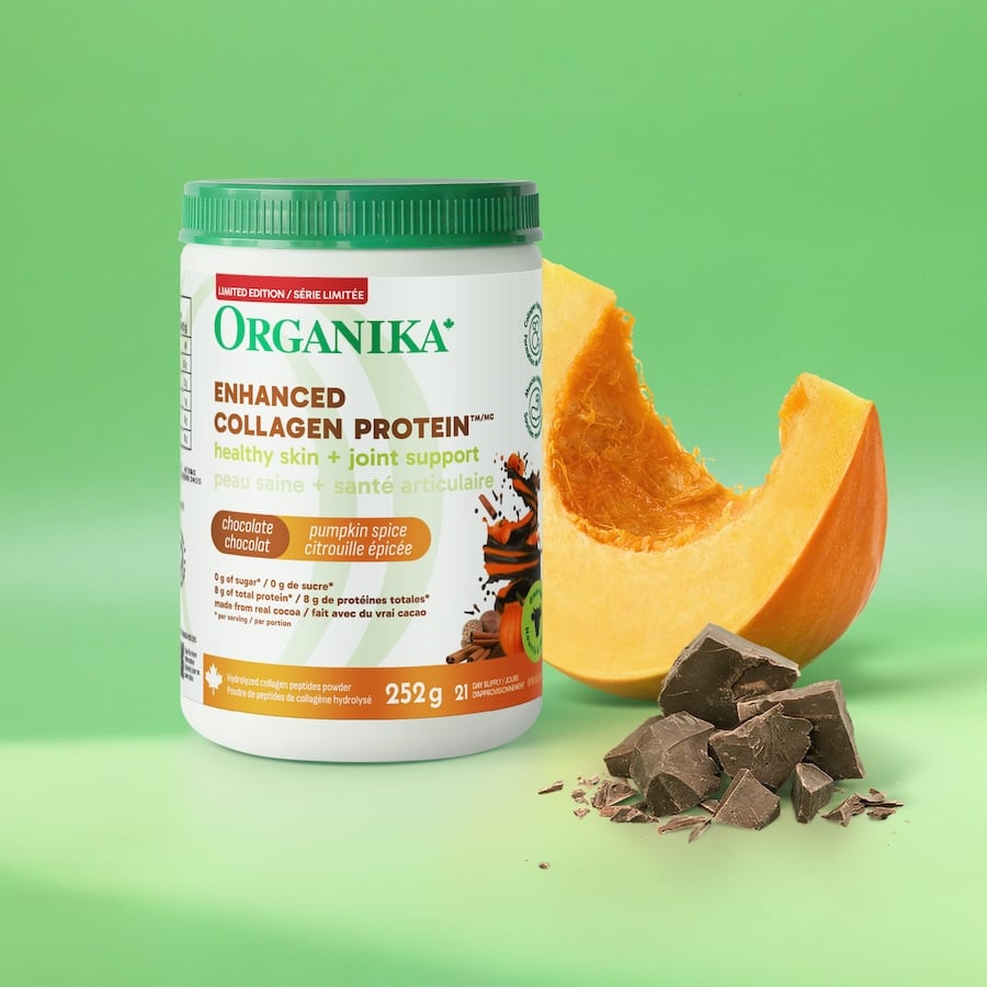 Une délicieuse poudre de collagène au chocolat et aux épices de citrouille qui favorise le confort des articulations, la santé de la peau et la synthèse des protéines sans ajout de charges.