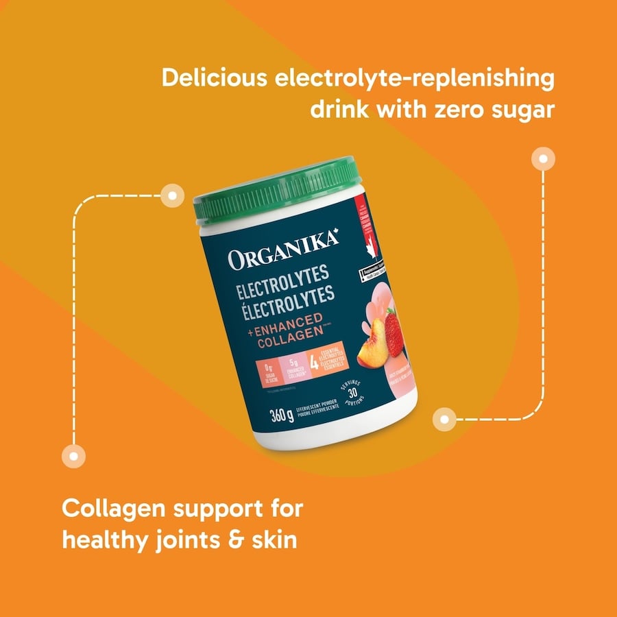 Electrolytes + Enhanced Collagen a été conçu pour maximiser l'hydratation quotidienne et reconstituer les électrolytes perdus lors d'exercices physiques modérés à intenses ; il contient également suffisamment de collagène pour soutenir les performances athlétiques et la santé des articulations. Veuillez consulter un praticien de santé avant de l'utiliser afin de déterminer s'il convient à vos besoins individuels en tant qu'athlète.