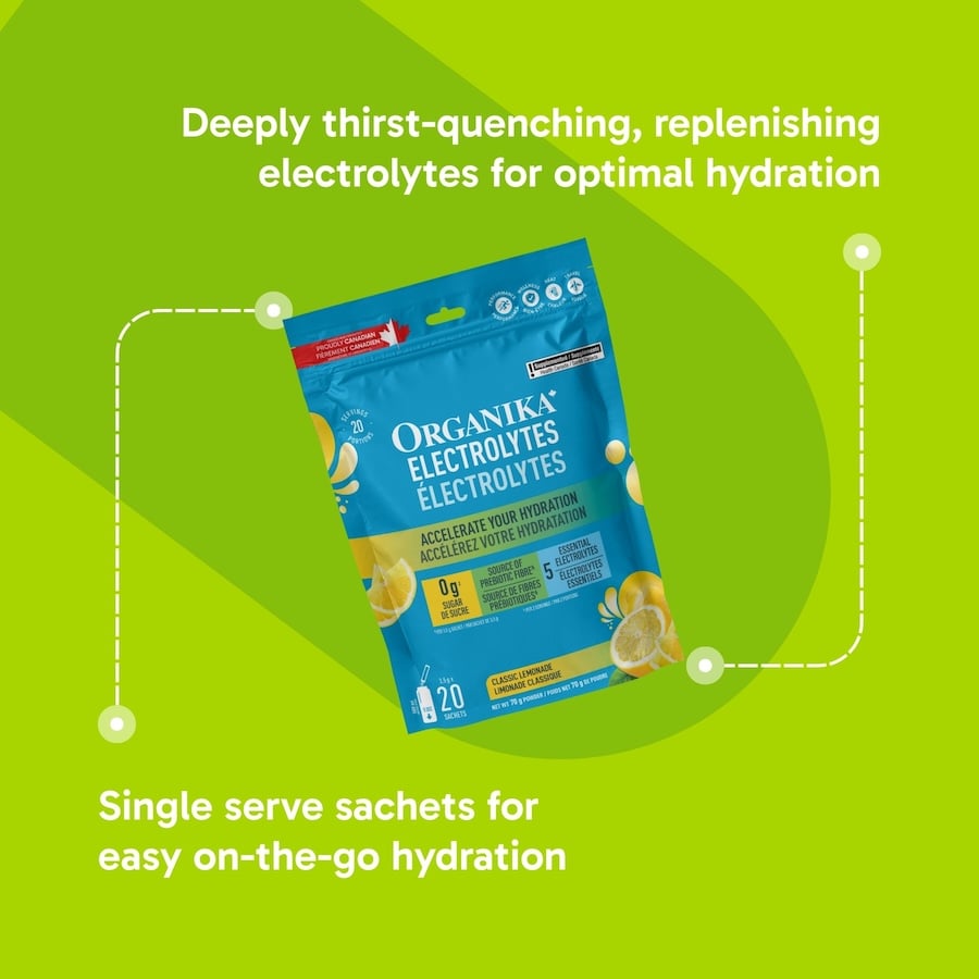 Les électrolytes jouent plusieurs rôles importants dans l'organisme, notamment l'hydratation, le maintien de l'équilibre hydrique, la contraction musculaire, l'influx nerveux et la régulation de la température. Nous perdons des électrolytes lorsque nous transpirons, tombons malades ou consommons des substances déshydratantes comme l'alcool et la caféine. Les électrolytes aident à reconstituer ces nutriments vitaux pour répondre aux besoins quotidiens.