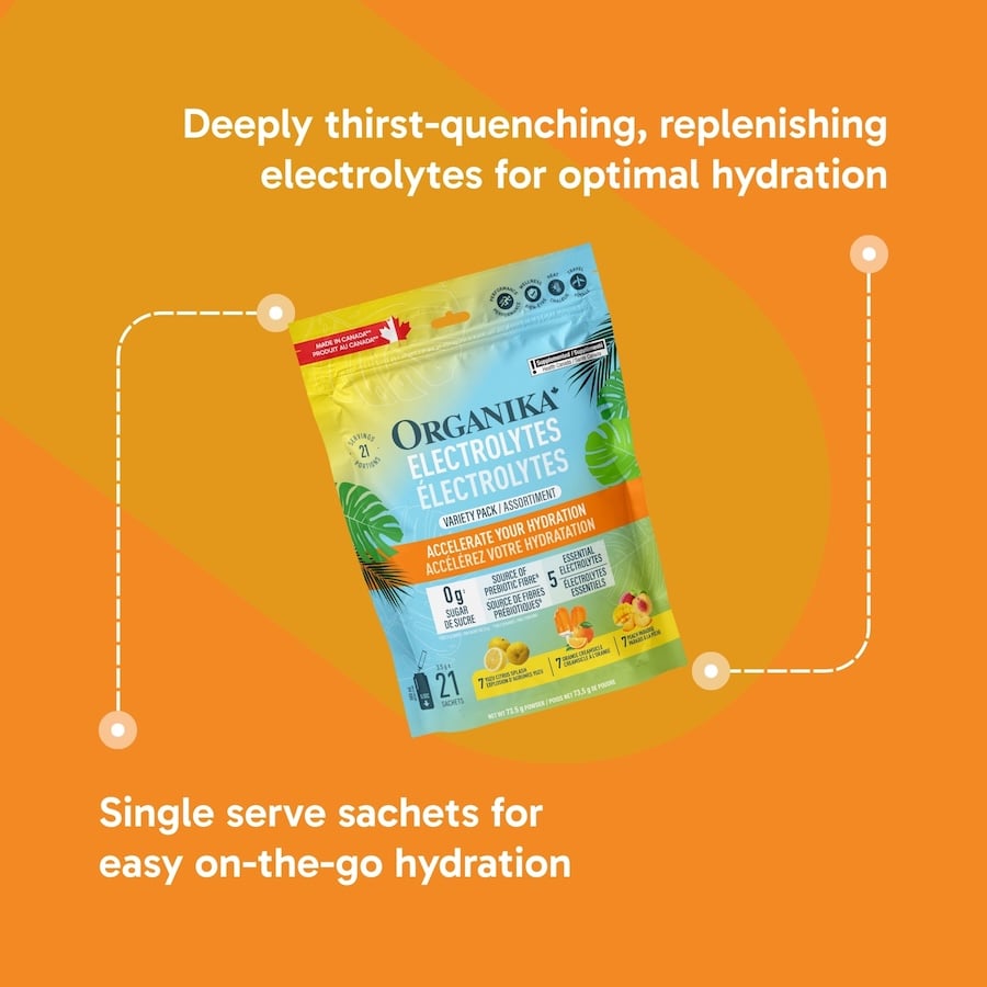 Les électrolytes jouent plusieurs rôles importants dans l'organisme, notamment l'hydratation, le maintien de l'équilibre hydrique, la contraction musculaire, l'influx nerveux et la régulation de la température. Nous perdons des électrolytes lorsque nous transpirons, perdons des liquides en raison d'une maladie ou consommons de grandes quantités de substances déshydratantes telles que l'alcool et la caféine. Les électrolytes vous permettent de reconstituer ces nutriments vitaux pour répondre à vos besoins quotidiens.
