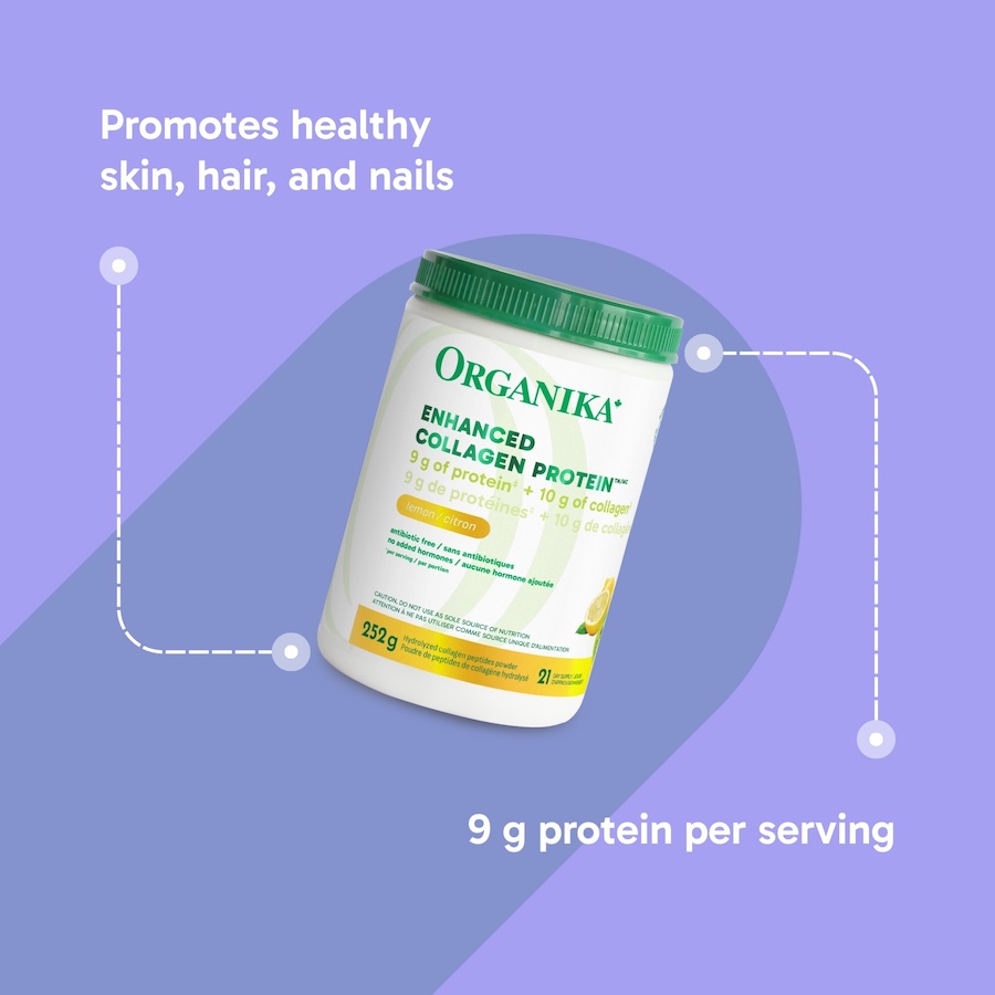 Enhanced Collagen est un supplément de collagène hydrolysé d'origine bovine contenant du collagène de type 1 et de type 3. Il offre une variété de bienfaits pour la santé et peut être facilement incorporé à votre routine quotidienne, car il est facile à mélanger aux boissons chaudes ou froides, aux smoothies et aux recettes.