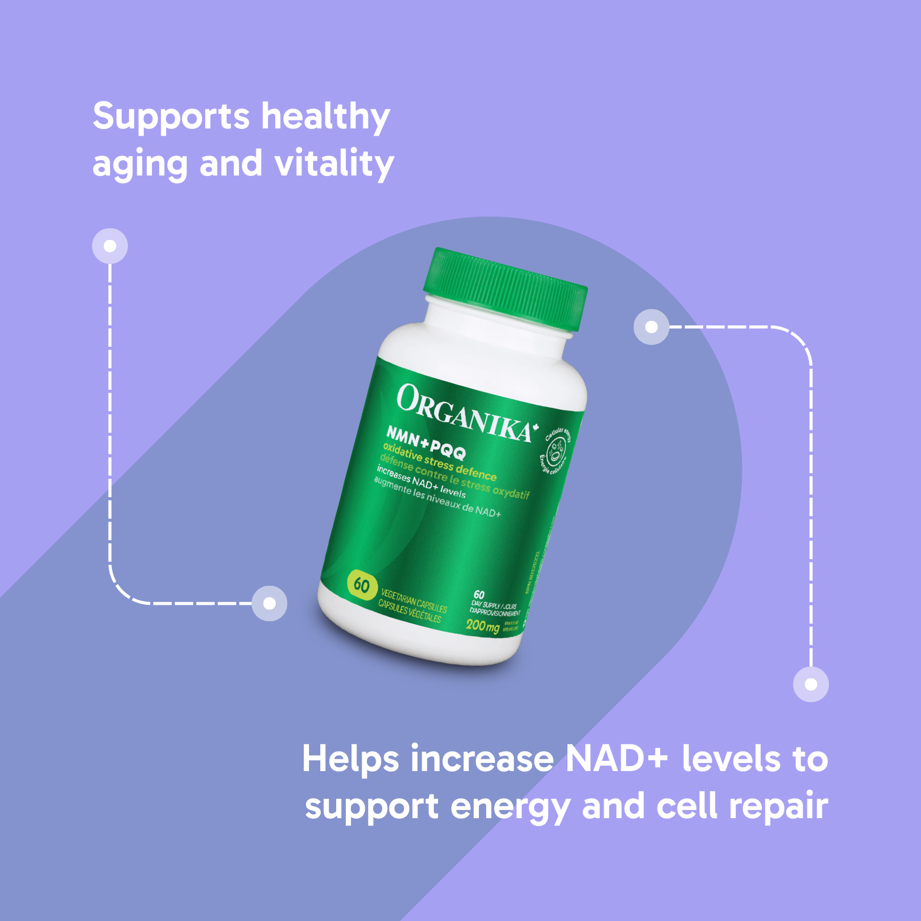 Le stress oxydatif survient lorsqu'il y a un déséquilibre entre les radicaux libres et les antioxydants dans l'organisme, ce qui entraîne des dommages cellulaires. La NMN et la PQQ possèdent toutes deux des propriétés antioxydantes, ce qui signifie qu'elles peuvent neutraliser les radicaux libres et réduire le stress oxydatif, protégeant ainsi les cellules des dommages.