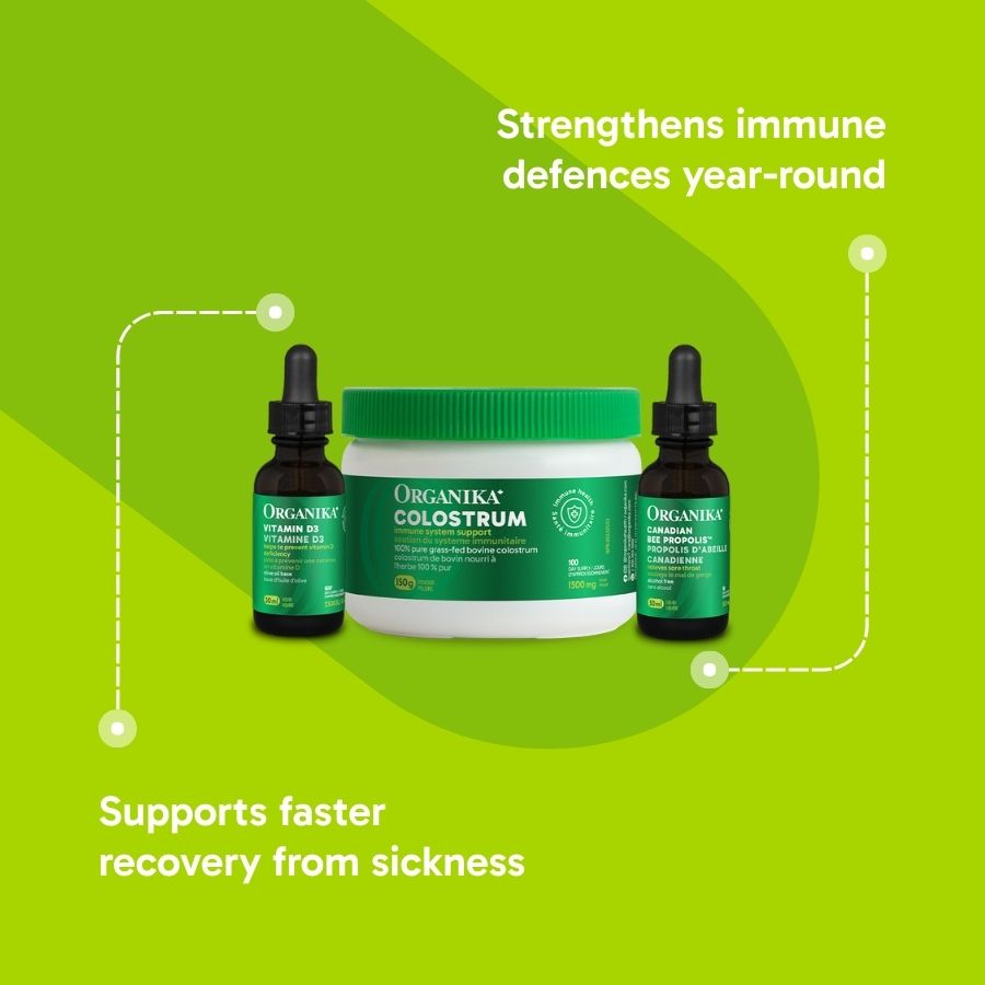 Qu'est-ce qui le rend si spécial ? Le colostrum est riche en composés qui soutiennent le système immunitaire, comme les immunoglobulines, les facteurs de croissance et les prébiotiques, qui aident l'organisme à mieux réagir aux agressions quotidiennes. Il est particulièrement utile pour soutenir la santé des voies respiratoires supérieures et est idéal pour les transitions saisonnières, les voyages ou chaque fois que votre système immunitaire a besoin d'un coup de pouce. En prime, il favorise également l'équilibre intestinal.
