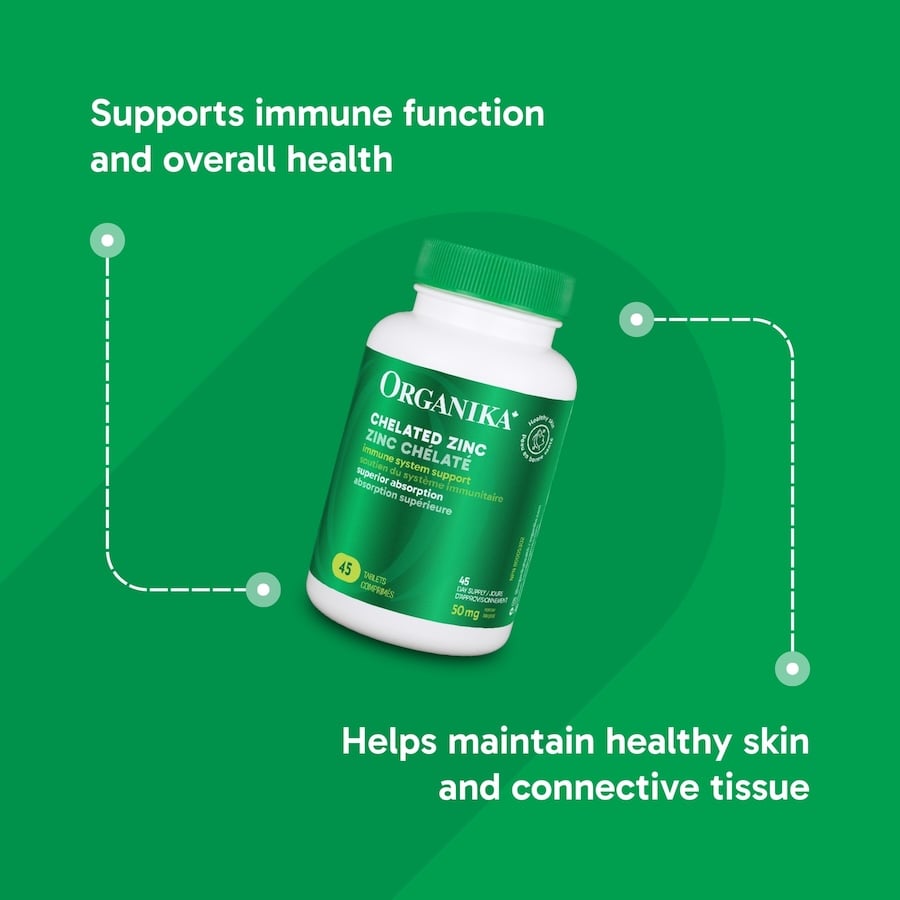 Chelated zinc delivers zinc in a highly absorbable form, enhancing stability and solubility for optimal uptake by your body. This advanced formulation ensures you get the most from your supplement, including vital functions support like immune health, skin maintenance and nutrient metabolism.