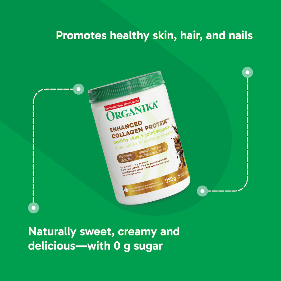 Collagen 101: What is Collagen Protein? You’ve probably heard all the buzz surrounding collagen, yet may still be asking yourself: what IS collagen really? You’re not alone, and we’re here to make it easy for you to understand. Collagen is the most plentiful form of protein in your body, and acts like the “glue” that holds it all together. That’s right, our bodies naturally produce collagen. Collagen contributes to elasticity, strength, and tone throughout the body. Unfortunately, as we age, our collagen production starts to decline. Collagen production declines even faster due to excess sun exposure, smoking, excess alcohol, and lack of sleep and exercise. But fear not, that’s where collagen supplementation comes to play. What are the benefits of collagen? Collagen Protein has many benefits, ranging from supporting your hair, skin and nails, to gut health and bone and joint support. Hair, Skin and Nail Health: Collagen helps increase the elasticity and moisture of your skin, while also reducing UVB damage and signs of photoaging. You can forgive yourself for many years of not wearing sunscreen outside. Bone and Joint Health: Collagen helps maintain healthy cartilage in the joints, improving function and reducing symptoms of joint pain associated with osteoarthritis. Gut Health: Collagen provides your body with the amino acid, L-Glutamine, which is essential in supporting your gut lining. Collagen Protein vs. Protein Powder: Is there a difference? Although Collagen Protein and Protein Powder are sometimes used interchangeably, they are different. The main difference involves their amino acid breakdown. Let’s go back to science class, shall we? Amino acids are the building blocks of proteins. They are required for many critical roles in your body, such as building proteins, hormone function, and neurotransmitters. Amino acids are categorized between essential and non-essential amino acids. This is where collagen gets involved. There's a total of 20 amino acids, 9 of which are essential. This means, our bodies cannot produce them on our own and need to be consumed through either diet or supplementation. Some easy ways to consume these 9 essential amino acids through diet include meat, eggs, poultry, edamame, or tofu. What about collagen? Collagen protein only contains 8 out of the 9 essential amino acids, considering it to be an “incomplete protein”. Protein Powders are typically formulated with all 9 essential amino acids, considering them to be a “complete protein”. While our Enhanced Collagen Original only has 8 of the 9 essential amino acids, our Essential Aminos Enhanced Collagen Protein has all 9 essential amino acids, which is a “complete protein”. Whether you choose to consume Enhanced Collagen Original or Essential Aminos Enhanced Collagen Protein depends on what your goals are. You will still reap the benefits collagen has to offer, but Essential Aminos Enhanced Collagen Protein is particularly beneficial if you are focused on your protein consumption, or the growth of lean muscle mass. Is collagen right for you? Whatever your goals are, we have collagen that’s right for you. It’s simple, just choose the one that fits your lifestyle. If you’re looking to start off with the basics, try our award-winning, Enhanced Collagen Original (psssst, it’s Canada’s #1 selling Collagen Powder). OR Are you looking to combine your collagen with other supplements? Choose from a variety of our multi-benefit blends like Enhanced Collagen Pure Beauty, Enhanced Collagen Bone and Joint, or Metaboost Fat Metabolizing Complex Powder. Are you pescatarian or vegetarian? We have options for you too. Do you want to have ALL sources of collagen in one? We have you covered. Do you want to make taking collagen fun? Choose from a variety of our flavoured options, from lemon to chocolate. The bottom line – collagen supplementation is particularly beneficial as you age, to support your hair, skin, nails, bones, joints, and gut health. Whatever your goals are, we have a collagen for you. References https://www.hsph.harvard.edu/nutritionsource/collagen/#:~:text=Collagen%20is%20the%20most%20abundant,muscles%2C%20tendons%2C%20and%20cartilage. https://www.healthline.com/nutrition/essential-amino-acids