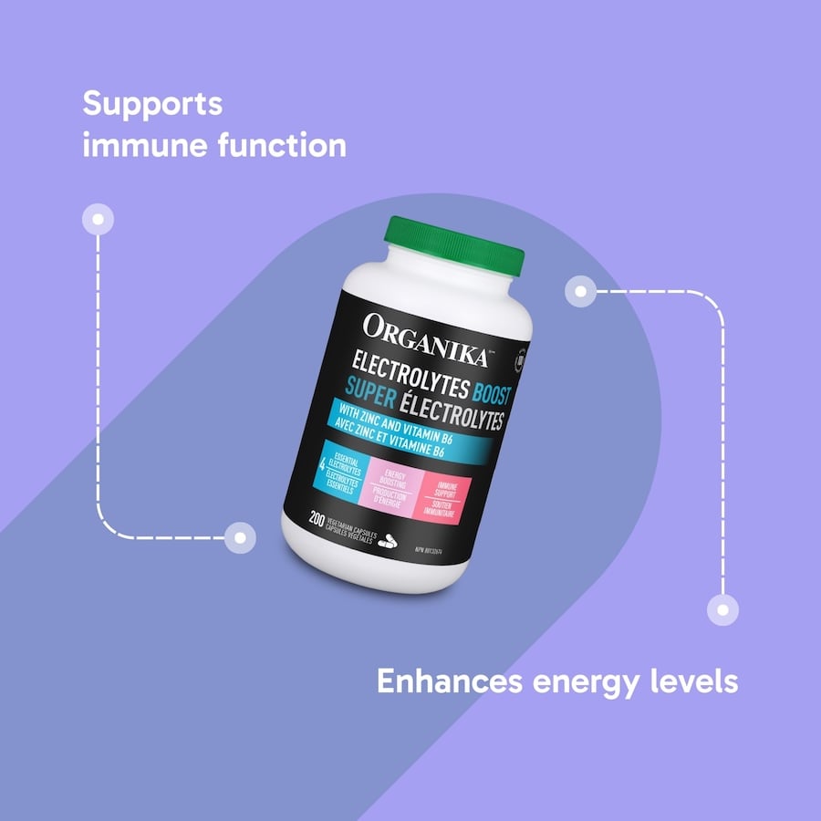 Electrolytes Boost is packed with 4 essential electrolytes, as well as vitamin B6 and zinc, working synergistically to promote normal muscle function, enhance immune support, and increase energy levels.