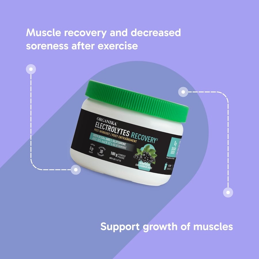 Organika's Electrolytes Recovery is the perfect blend of post-workout supplements for your muscles after bouts of intense exercise, sport or strength training. You get a blend of electrolytes to support hydration, BCAAs for protein synthesis, L-Glutamine for decreased muscle soreness and recovery, as well as Enhanced Collagen™ to support your joints and bones.