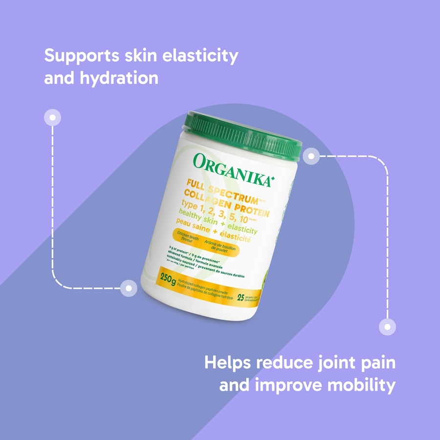 read moreThere’s different types of collagen? Collagen has become the talk of the health industry, fitness industry as well as the beauty industry. Why? It’s an important protein. In fact, it is the most abundant protein in your body, making up 30% of your protein mass.[1] Collagen is found in our bones, connective tissues (joints, ligaments, and cartilages), muscles, hair, skin, nails and even our blood vessels. Though important for many reasons, collagen’s primary function is strength and structure. Think of it as the glue that holds your body together. Collagen peptides are what give your skin elasticity, shape, and structure in joints. Now you may understand why there are various types of collagen (16 to be exact). Regarding supplements, the most talked about types of collagen are type 1, 2, and 3. Collagen supplements come in various forms of either hydrolyzed collagen (collagen peptides, collagen powder, collagen capsules or liquid form), gelatin or undenatured collagen. Hydrolyzed collagen peptides seem to be the easiest for the body to absorb and use. Type 1 Collagen Where is it found? Type 1 collagen is found in our hair, skin and nails and is the most abundant type of collagen in our body, making up around 90%. Type 1 collagen also can be found in our bones – making up around 40% of our bone matrix as well as in our ligaments. Sources of Type 1 collagen include marine and bovine collagen. What does it do? Type 1 collagen is essential when it comes to the beauty benefits of Collagen as it is what is responsible for our skin elasticity, strength and helps with anti-aging. Cellulite is a loss of elasticity in our skin and type 1 collagen plays a significant role in that. Products with Type 1 Collagen Peptides All our Enhanced Collagen products contain Type 1 and 3 collagen, sourced from grass-fed bovine with no hormones or antibiotics Marine Collagen Powder made from fish scales containing only Type 1 collagen Liquid Marine Collagen with Biotin and Vitamin C is marine collagen in liquid form with beauty-boosting ingredients Salmon Collagen Capsules derived from the skin of wild salmon, rich in Type 1 collagen only Effervess tablets made with marine collagen and vitamin C Beef Bone Broth rich in Types 1 & 3 collagen Type 2 Collagen Where is it found? Type 2 Collagen is what we find in our connective tissues – think joints, ligaments, and cartilage. Chicken is known to have a very high amount of type 2 collagen in it. What does it do? Type 2 collagen is what is responsible for maintaining the structure of our bones and cartilage. When we have a loss of collagen in our body (it naturally decreases as we age and is affected by smoking or UV light exposure), cartilage and ligaments start to weaken and break down, leading to damage and osteoarthritis. Products with Type 2 Collagen Peptides Biocell Collagen derived from chicken cartilage (sternum) rich in type 2 collagen, with added hyaluronic acid and chondroitin sulfate for optimal joint health Chicken Bone Broth has type 2 collagen as well as essential glycosaminoglycans (GAG’s) to help with connective tissue Type 3 Collagen Where is it found? Type 3 collagen is also an abundant form of protein found in our body and found alongside type 1 collagen fibers. It is in the reticular fibers in the body. Those reticular fibers are your bones, muscles, organs, blood vessels, dentin, tendons as well as some other connective tissues. What does it do? Type 3 collagen alongside type 1 collagen is essential for improving the elasticity in our skin, anti-aging, improved circulation, healthy bone matrix, healthy nails and thicker hair. Products with Type 3 Collagen Peptides Enhanced Collagen is the #1 selling Collagen Powder in Canada* and made with grass-fed bovine, antibiotic and hormone free, offering both type 1 and 3 hydrolyzed collagen peptides. Try any of our products with Enhanced Collagen Beef Bone Broth: Excellent source of type 3 collagen! Rich in essential minerals and GAG’s known to contain Hyaluronic acid, chondroitin, and glucosamine What Types of Collagen Do You Need? Now that you know the various types of collagens, you may be wondering which one to use. 1. Let’s start with sourcing the best types to consume. Collagen (all types) is a large molecule, so start by choosing supplements that have gone through hydrolyzation. Look for hydrolyzed collagen peptides for optimal absorption. 2. Next, choose your collagen supplement based on what your health needs are, what benefits you would like to see and how each type of collagen can help your body overall. a) Are you focused on beauty and bone and joint health – you may want types 1 and 3 b) If you are only focused on joints and ligaments – you may want bone broths that are rich in Type 2 3. Third, choose the one that suits your lifestyle best. Do you prefer powder (to mix into your choice of beverages or water), capsules, or liquid? If you feel you want to supplement with all three types of collagen, that is acceptable. With collagen consumption you are also getting an intake of 17 other types of amino acids that are beneficial as well. “If you are looking for an overall collagen 1-5, combine Full Spectrum and the Vegetarian Collagen capsules. Enhanced Collagen is great because it has type 1 and 3. Type 1 for hair, skin, nails bones etc. Type 3 is great to support the gut health. I would suggest type 2 collagen for those who are looking to specifically support joints/inflammation.” Stephanie Lannon, R.H.N. and Wellness Educator Supplementing with Full Spectrum Collagen This is a plentiful form of Types 1, 2, 3 collagen and can keep muscles and tendons together and even rebuild your cartilage, helping to fight the symptoms of arthritis. “With age, collagen formation declines naturally, leading to a loss of elasticity, strength, and tone throughout the body. Organika’s Full Spectrum Collagen provides you with Bovine Collagen types 1 & 3 (giving you thick hair, st
