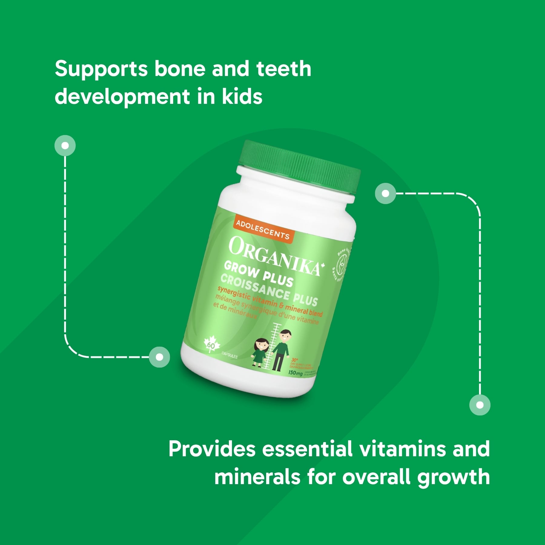 Helps in the development and maintenance of bones and teeth, especially in children and young adults. Helps in energy metabolism, tissue formation, and bone development. Helps in the absorption and use of Calcium and Phosphorus.