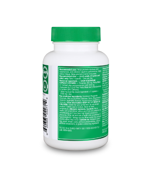 Each capsule contains 100 mg of caffeine, sourced naturally from yerba mate.